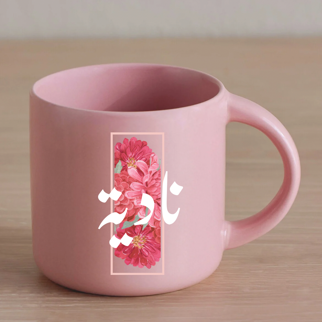 كوب أنيق باللون الوردي مزوّد بملصق DTF UV عالي الجودة.