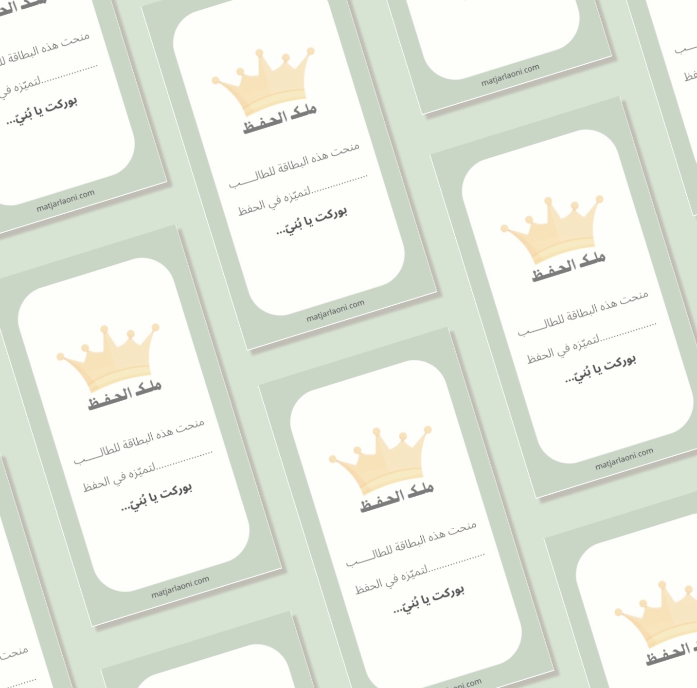 ١٠ بطاقات تعزيز الطلاب بعبارة ملك الحفظ مع امكانية كتابة اسم الطالب عليها
